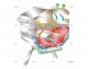 Nerezový gril s odnímatelným plynovým bombovým systémem. Ochranný kryt CV470, zapalovací knoflík. 230 x 305 mm