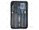 Kit de utensilios de cocina compuesto por cuchillo, pinzas, pala, palos para pinchos y pincho doble. Estuche con cremallera fácil de transportar.