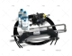 Kit de direção hidráulica Riviera FB115 para motores de popa até 115 HP. Com seis voltas de bombordo a estibordo. O kit é composto por um pistão com conexões, uma bomba com conexões, 10m de tubo e 2 litros de óleo hidráulico. Montagem frontal.