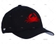 Boné preto de proteção solar com vários motivos bordados e pala rígida. Bordado vermelho. 98% algodão e 2% elastano. Flexfit®. Disponível em 2 tamanhos: S/M - L/XL.